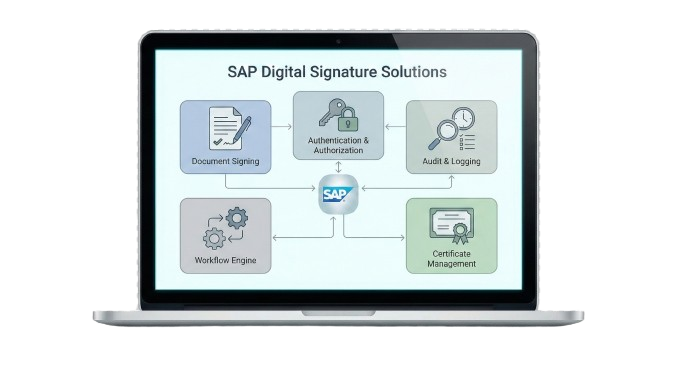 It eliminates manual printing, scanning, and uploading by embedding secure digital signatures into SAP workflows.